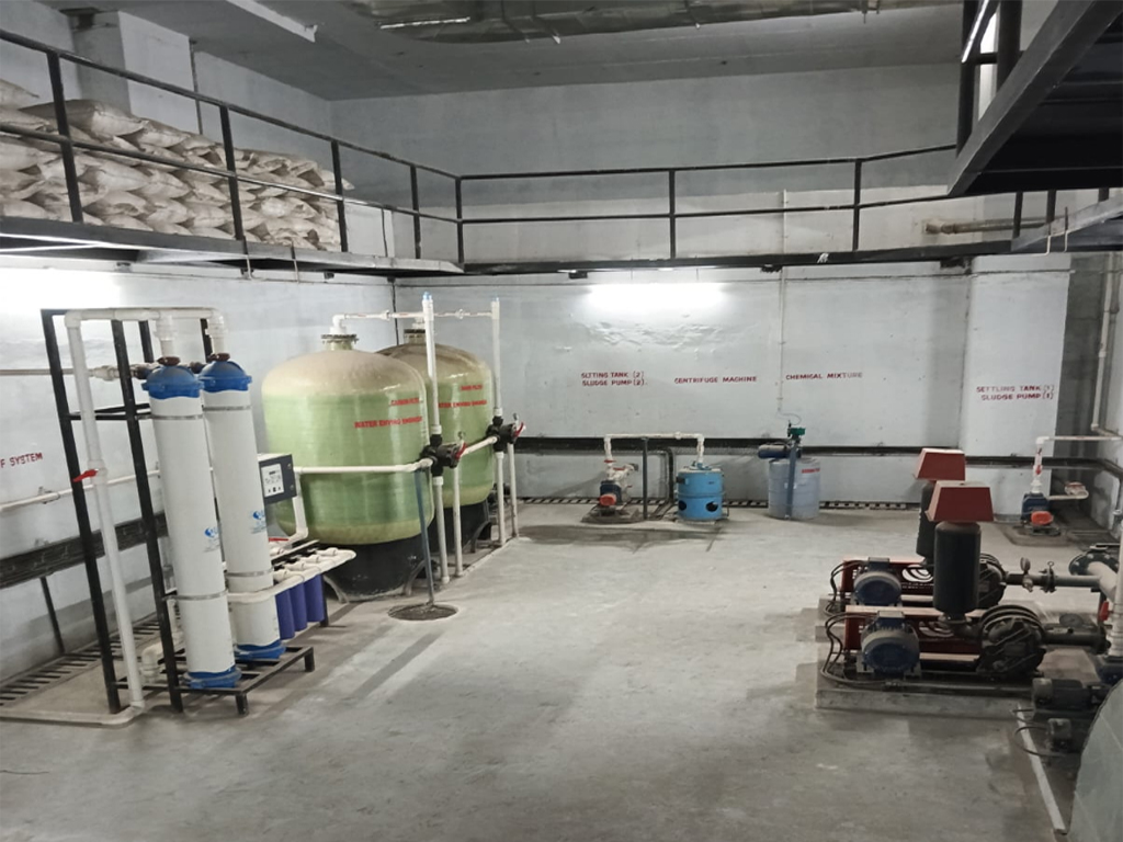 Sludge disposal system : Settled sludge from plain settler will be removed by pumping to the sludge holding tank where it is passed to filter press to make cake of the sludge.